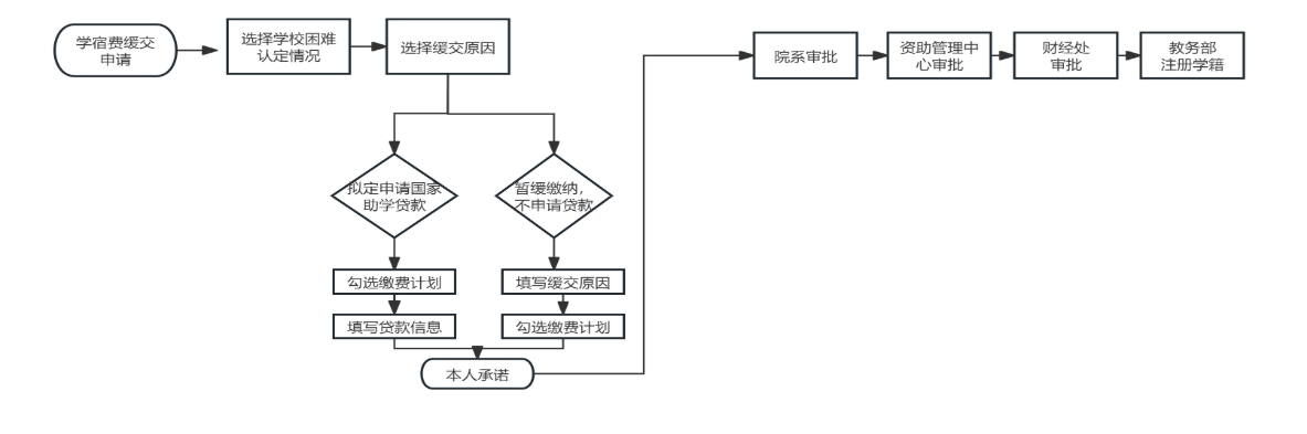 已经在生源地办理了国家开发银行生源地信用助学贷款的学生,首先登录国家开发银行生源地助学贷款学生在线服务系统导出《国家开发银行生源地信用助学贷款受理证明》,获取回执校验码;其次通过登录学校“数字京师”-“办事大厅”-“学宿费缓交平台”申请费用缓交并填写贷款回执信息(具体流程参照上图),审核通过后由学校完成高校确认。